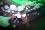 Despite this, the deep gash on the Knot's side was a fatal one. Her decks were down and completely awash before the rescue tug Salvage Chieftain arrived and cut the vessels apart. Two sea going tugs, Matilda Foss and the Foss 21 then took the sinking Knot in tow and headed for the shallower, protected waters of Crescent Bay. They were not destined to make it. Just off Tongue Point Reef, at the eastern side of the entrance to Crescent Bay, the strong currents caught the salvors and the Knot in its grip. It spun the sinking vessel broadside to the current and pulled the already sinking starborad side completely underwater. The Knot then sank quickly, settling on her starboard side in about 135 feet of water, where she lies today.
