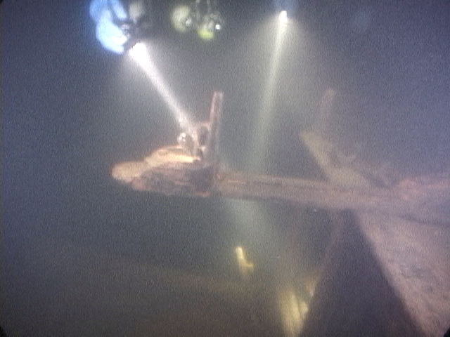 June 24, 2000We dropped a weighted line next to the tug and descended down it to the shipwreck. The wooden tugboat is presently sitting upright on the bottom and is fully intact except for the steering wheel and compass in the wheelhouse and the propeller, which have been removed by salvers.The name “S. L. Dowell” is still visible on the stern and on a board on the wheelhouse. The Corliss engine is visible through windows and a hatchway. The wheelhouse is assessable through doorways on each side. Light bulbs are still in place in their sockets. The dive team (Andrew Georgitsis, Walter Jaccard and Mark Tourtellot) spent 20 minutes on the shipwreck at an average depth of 195 feet, followed by 35 minutes of decompression. The team obtained some excellent video footage of the tugboat.